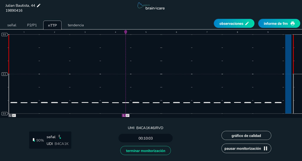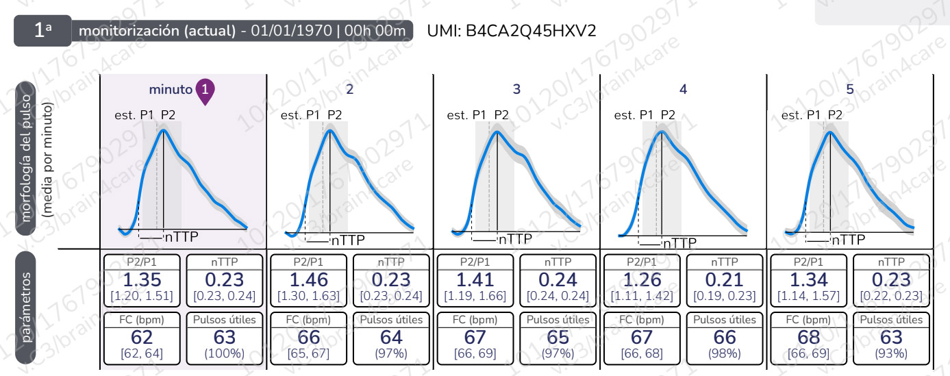 la forma de onda de PIC sustituta en vivo muestra la dinámica intracraneal, la interacción entre la presión intracraneal y la distensibilidad.